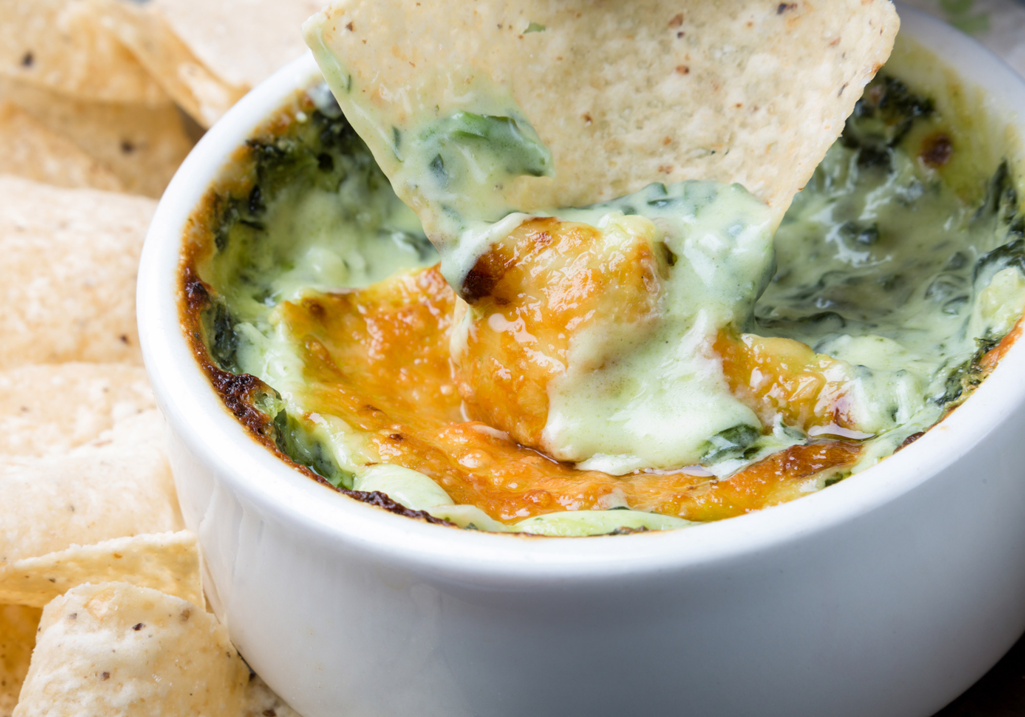 Photo: Hot Spinach Artichoke Dip with tortilla chips