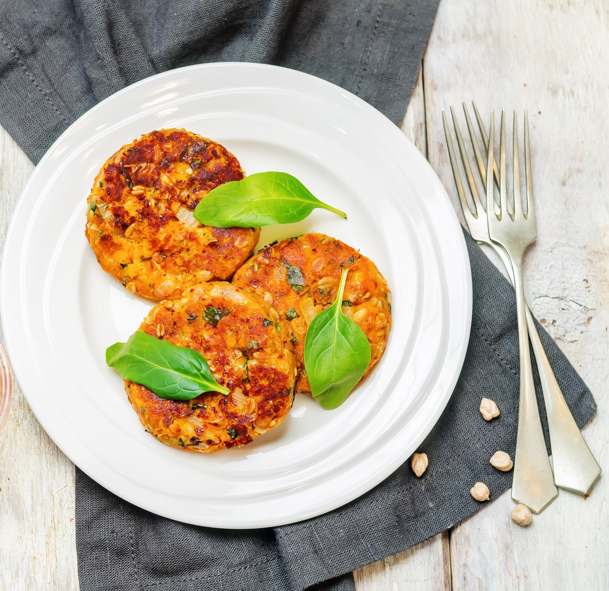 - Pour cooked chickpea mixture into medium bowl, then add carrot, spinach, bell pepper, and scallions. Add parsley, garlic powder, onion powder, black pepper, and flaxseed meal. Add egg, if desired. Mix thoroughly to combine.